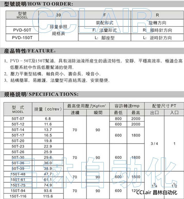 PVD-50T-07,PVD-50T-12,PVD-50T-14,PVD-50T-17,PVD-150T-61,PVD-150T-75,定量輪葉泵浦 |