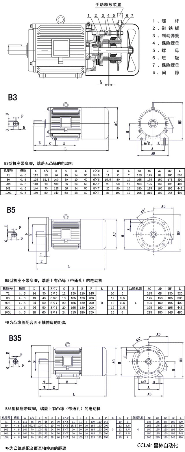2、電動機主體防護等級為IP44,交流制動器為IP23;