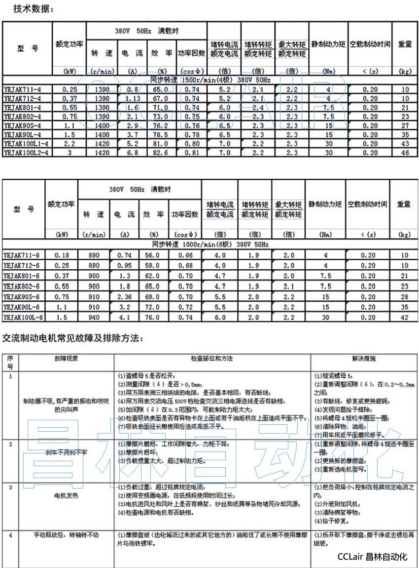 2、額定電壓380V 50Hz(交流制動器與電動機相同);