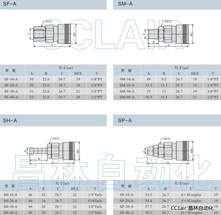 SF-10,SF-20,SF-30,SF-40,SM-10,SM-20,SM-30,SH-10,SH-40,SP-20,SP-30,雙手操作快換接頭