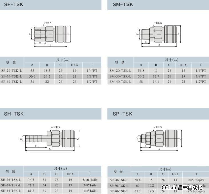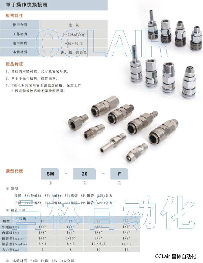 SF-20-TSK,SF-40-TSK,SM-20-TSK,SM-30-TSK,SH-20-TSK,SH-30-TSK,SP-20-TSK,單手操作快換接頭