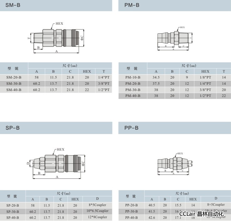 SM-20,SM-30,SM-40,PM-10,PM-20,PM-30,PM-40,SP-20,SP-30,SP-40,PP-20,PP-30,單手操作快換接頭