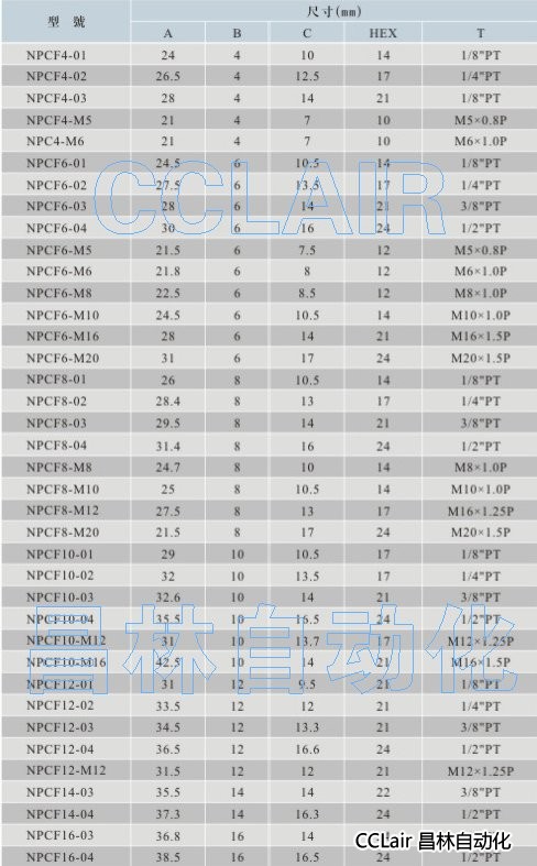 NPCF4-01,NPCF6-M5,NPCF8-M6,NPCF10-02,NPCF12-04,NPCF14-03,NPCF16-03,接頭