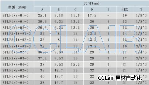 SPLF1/8-01-G,SPLF1/4-02-G,SPLF5/16-01-G,SPLF3/8-03-G,SPLF1/2-04-G,接頭