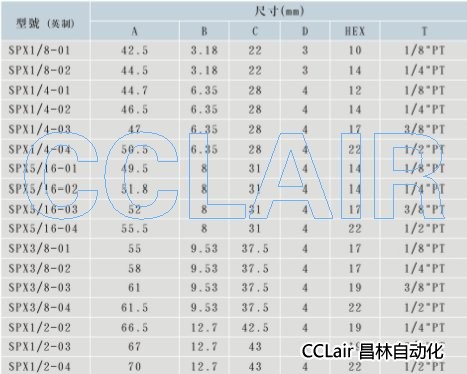SPX1/8-01,SPX1/8-02,SPX1/4-02,SPX5/16-01,SPX3/8-01,SPX3/8-03,SPX1/2-04,接頭