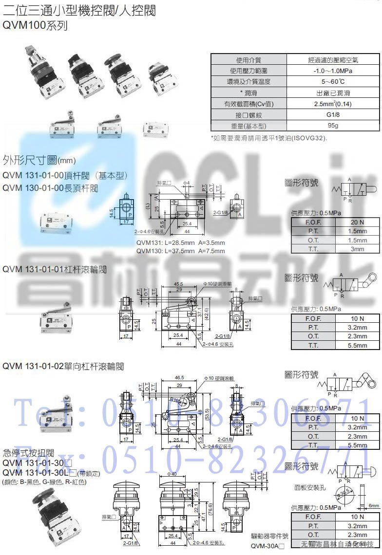 QVM131-01-30L,二位三通小型機控/人控換向閥,生產廠家,價格