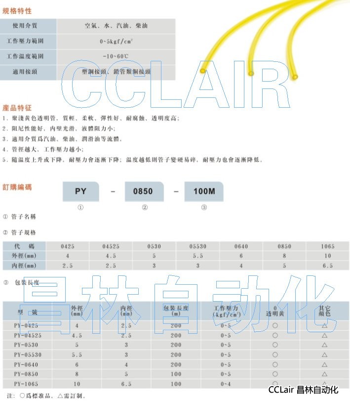 PY-0425-200M,PY-04525-200M,PY-0530-200M,PY-0850-100M,PY-1065-100M,耐油管