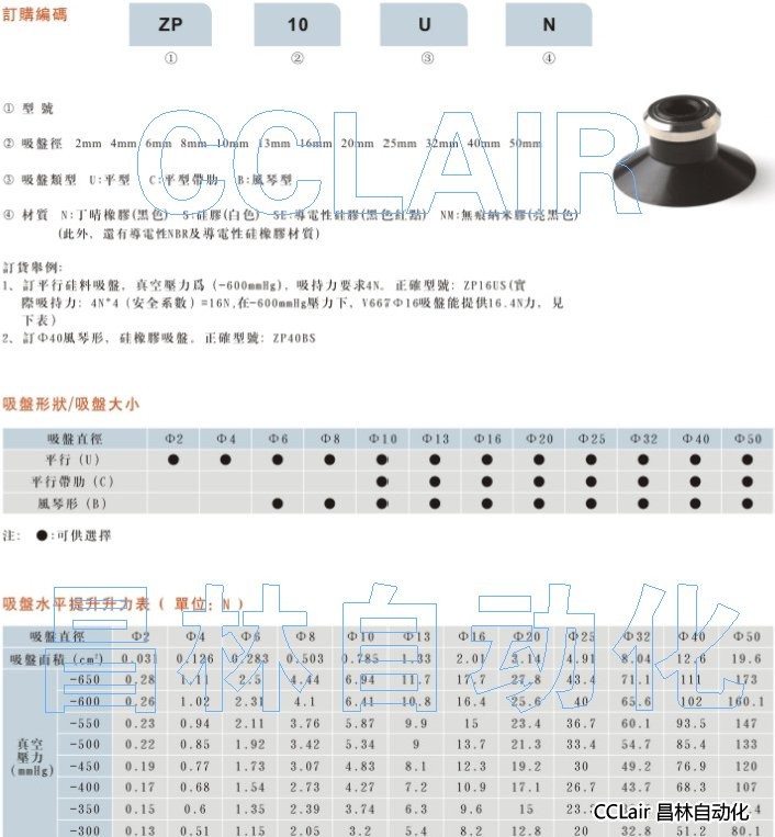ZP-2-U-N,ZP-4-U-N,ZP-6-U-N,ZP-8-U-N,ZP-10-U-N,ZP-13-U-N,ZP-16-U-N,真空吸盤
