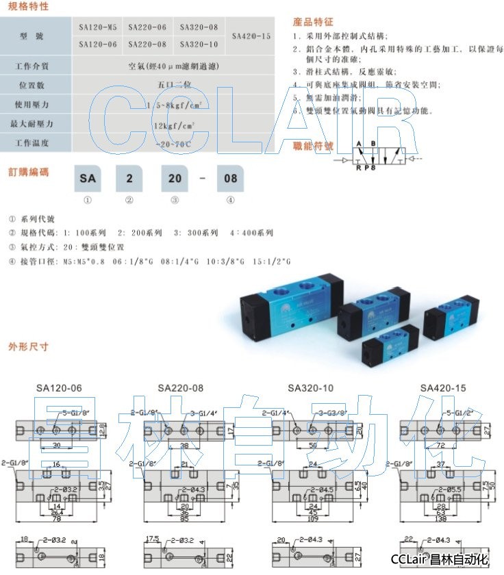 SA120-M5,SA120-10,SA120-06,SA220-06,SA220-M5,SA220-08,SA220-15,雙頭雙位氣動(dòng)閥
