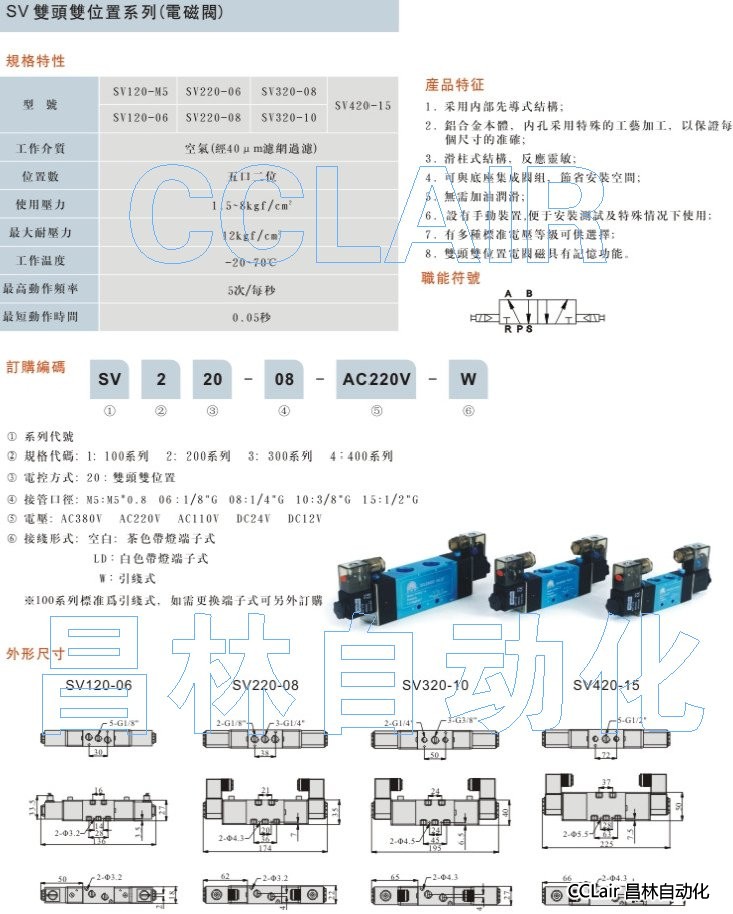 SV120-M5,SV120-06,SV120-15,SV220-06,SV220-08,SV420-10,SV420-15,雙頭雙位電磁閥