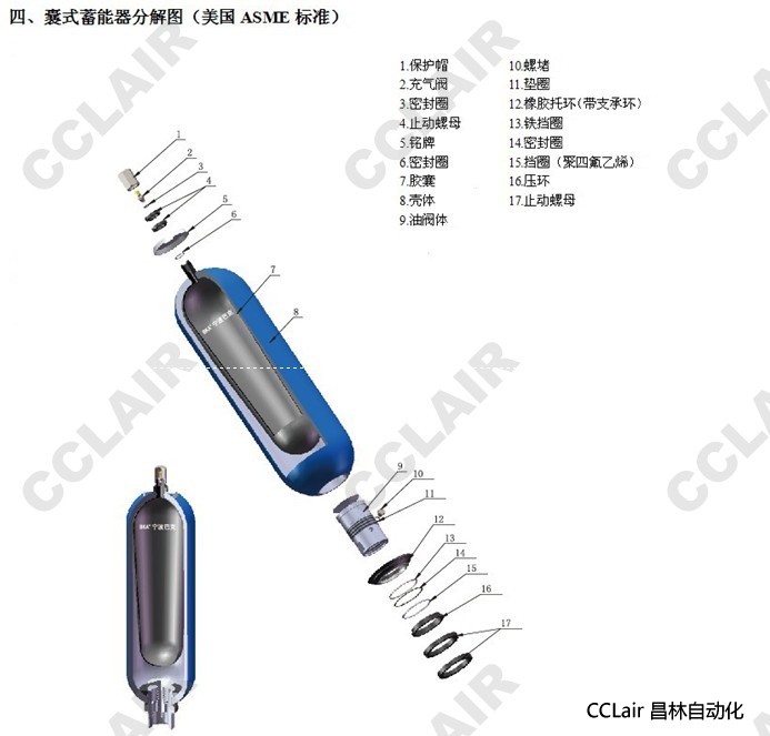2.若對(duì)囊式蓄能器有特殊要求時(shí),請(qǐng)同本企業(yè)商洽。
