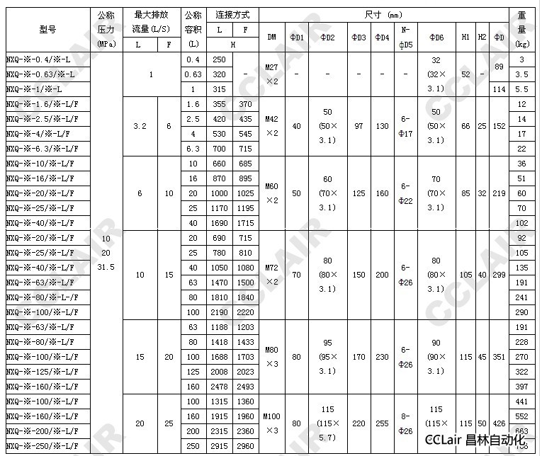 NXQ-A-125/20,NXQ-A-125/31.5,NXQ-A-160/10,NXQ-A-160/20,NXQ-A-160/31.5,蓄能器