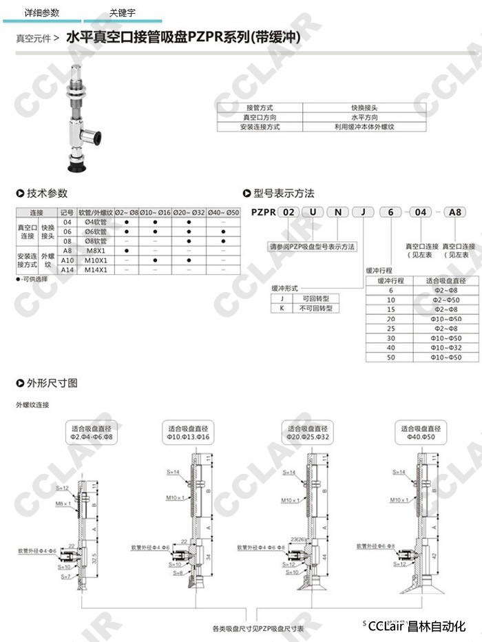 PZPR32CK6,PZPR40CK6,PZPR50CK6,PZPR16CJ6,PZPR25CK6,PZPR16CK6水平真空口接管吸盤