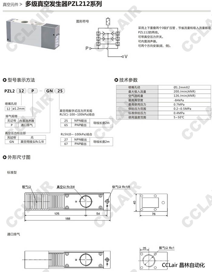 PZL212-25,PZL212P-25,PZL212-GN25,PZL212P-GN25,多級真空發(fā)生器