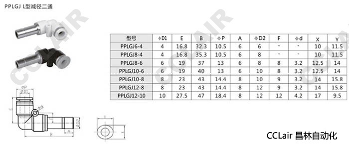 PPLGJ6-4,PPLGJ8-4,PPLGJ8-6,PPLGJ10-6,PPLGJ10-8,PPLGJ12-8,PPLGJ12-10,L型減徑二通接頭