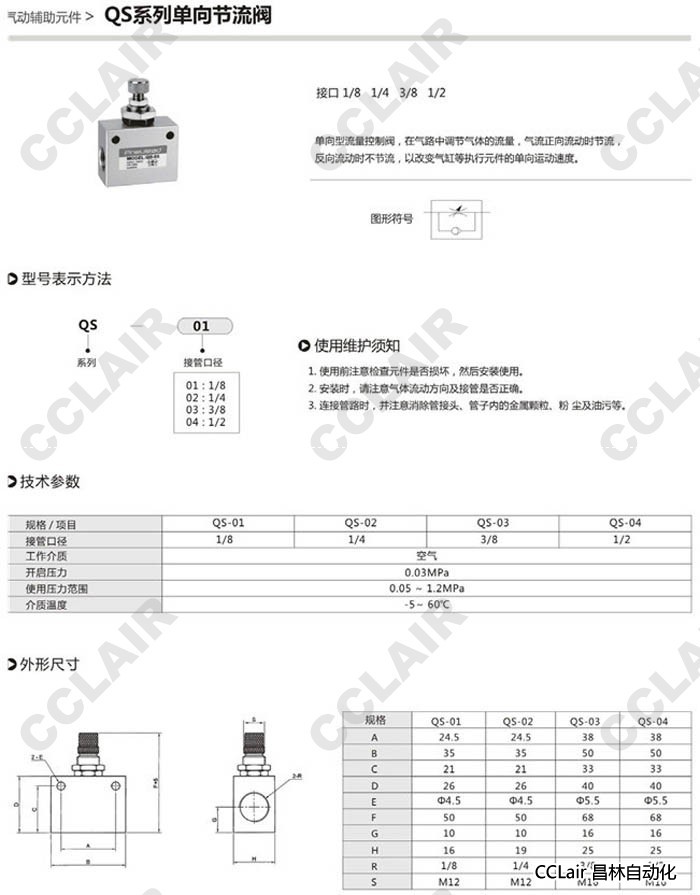 QS-01,QS-02,QS-03,QS-04,單向節(jié)流閥