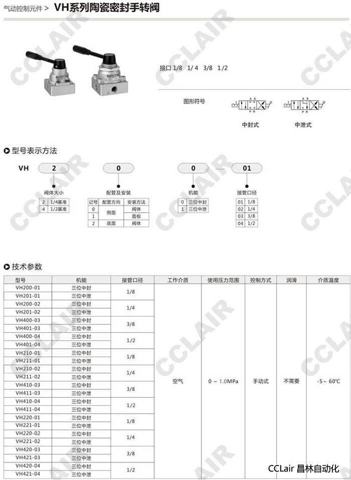 VH400-04,VH401-04,VH410-04,VH411-04,VH420-04,VH421-04,陶瓷密封手控閥