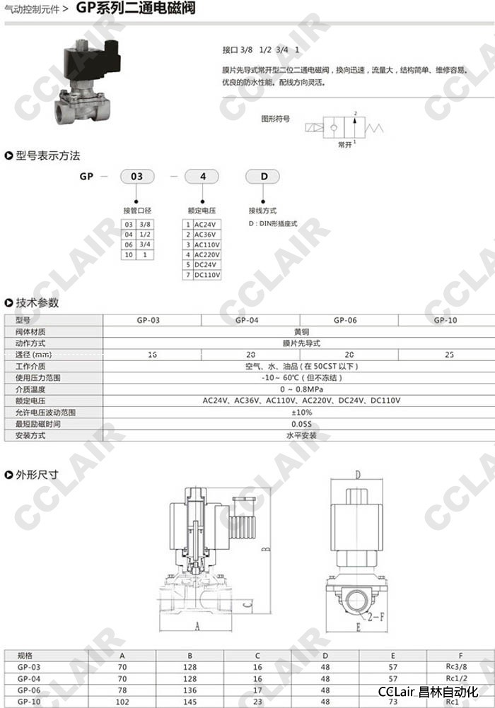 GP-03,GP-04,GP-06,GP-10,二通電磁閥