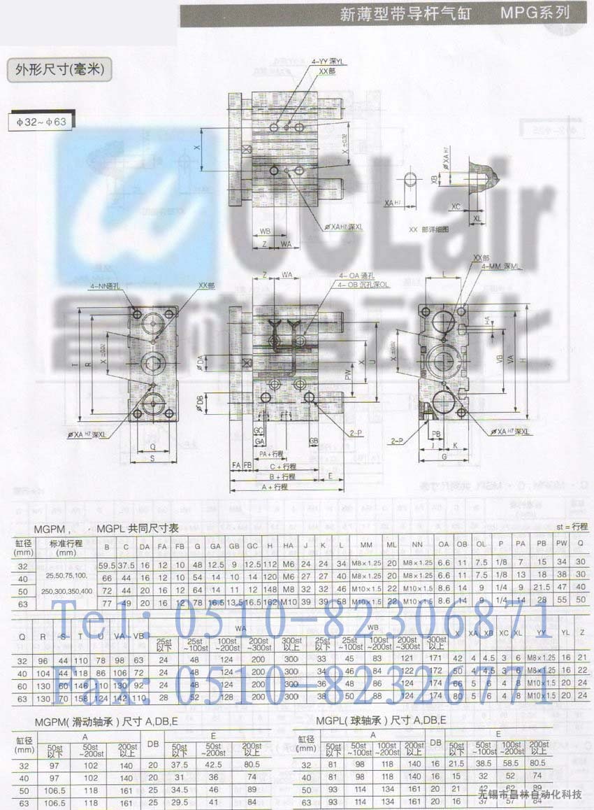 MGPL20N-400,MGPL25N-400,MGPL20N-75,MGPL25N-75,新薄型帶導桿氣缸