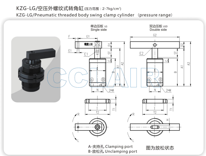 KZG-LG32,KZG-LG40,KZG-LG50,空壓外螺紋式轉角缸,無錫昌林