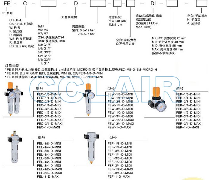 FEL-M5-D,FEL-M7-D,FEL-QS4-D,FEL-QS6-D,FEL-1/8-D,FEL-1/4-D,FEL-3/8-D,氣源處理件