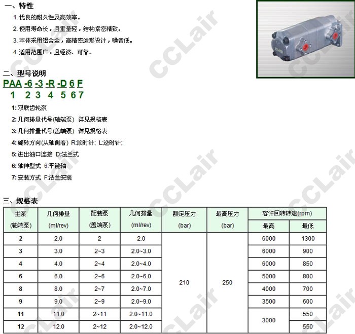 PAA-6-3-L-D6F,PAA-2-2-R-D6F,PAA-3-3-L-D6F,雙聯(lián)齒輪泵