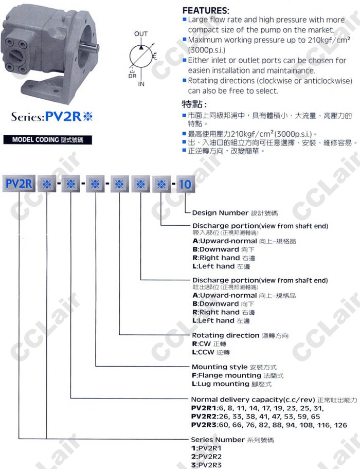 PV2R2-26-L-RLR-10,PV2R2-33-L-RLR-10,PV2R2-38-L-RLR-10,PV2R2-41-L-RLR-10,PV2R2-47-L-RLR-10,