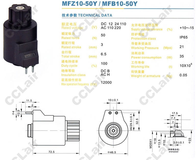 MFZ10-50Y,MFB10-50Y,方向閥用電磁鐵