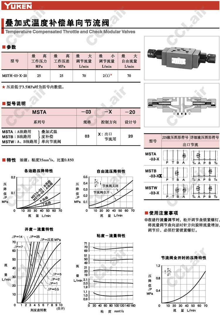 MSTA-03-X-20,MSTB-03-X-20,MSTW-03-X-20,疊加式溫度補償單向節(jié)流閥,YUCIYUKEN榆次油研 |