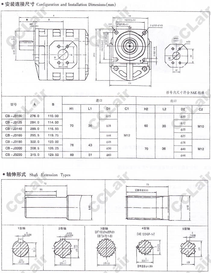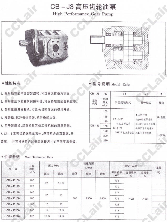 CB-J3100,CB-J3125,CB-J3140,CB-J3160,CB-J3180,CB-J3200,CB-J3220,高壓齒輪油泵,YUCIYUKEN