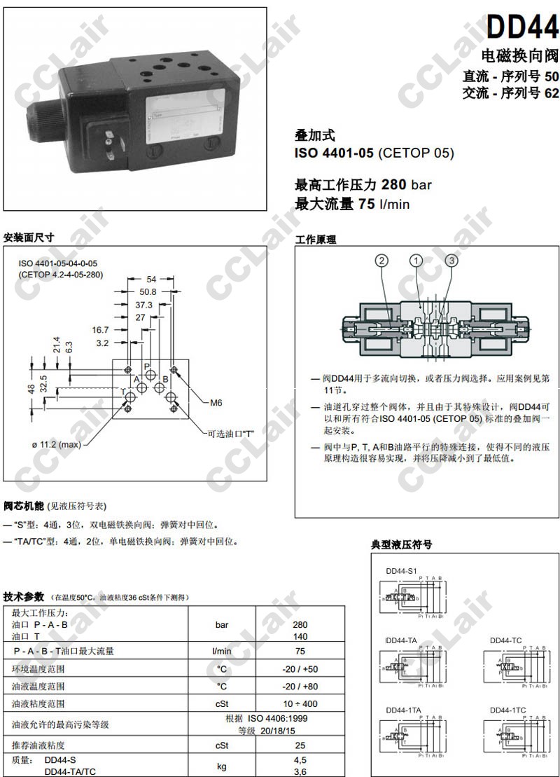 DD44-S1/50-24V-CC/V,DD44-TA/50-24V-CC/V/CM,DD44-TC/62-110V-50HZ/V,DD44-1TA/62-110V-50HZ,DD44-1TA/50-24V-CC,電磁方向控制閥