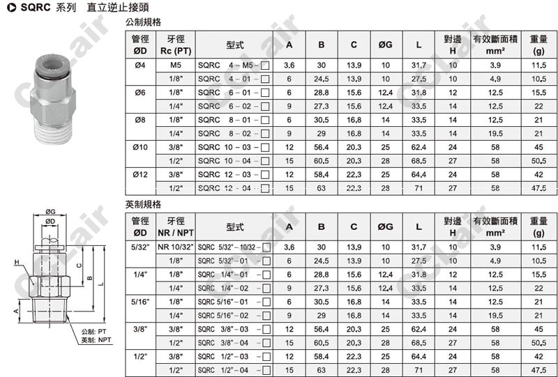 氣立可(chelic),SQRC4-M5,SQRC6,SQRC8,SQRC10,SQRC12,SQRC5/32,SQRC1/4,SQRC5/16,SQRC3/8,SQRC1/2