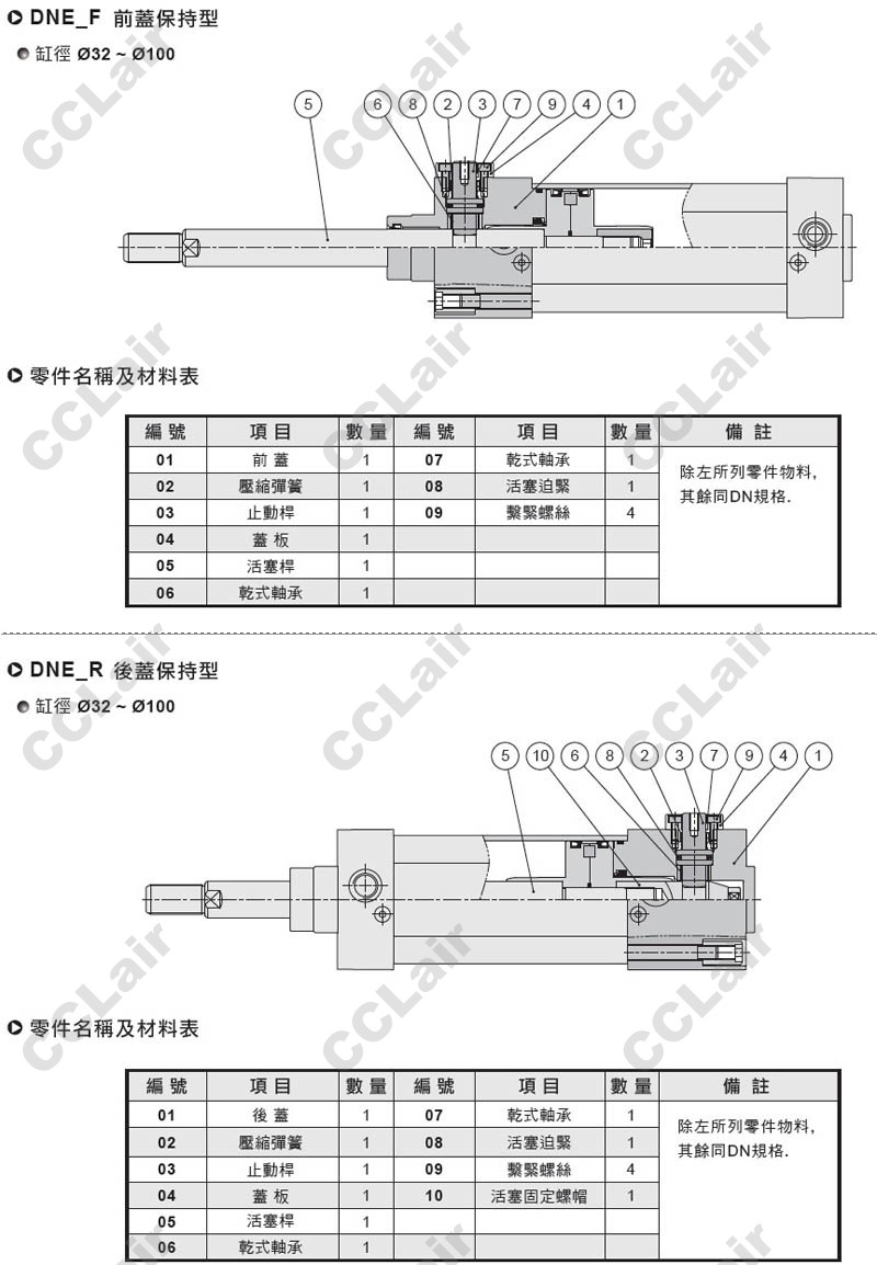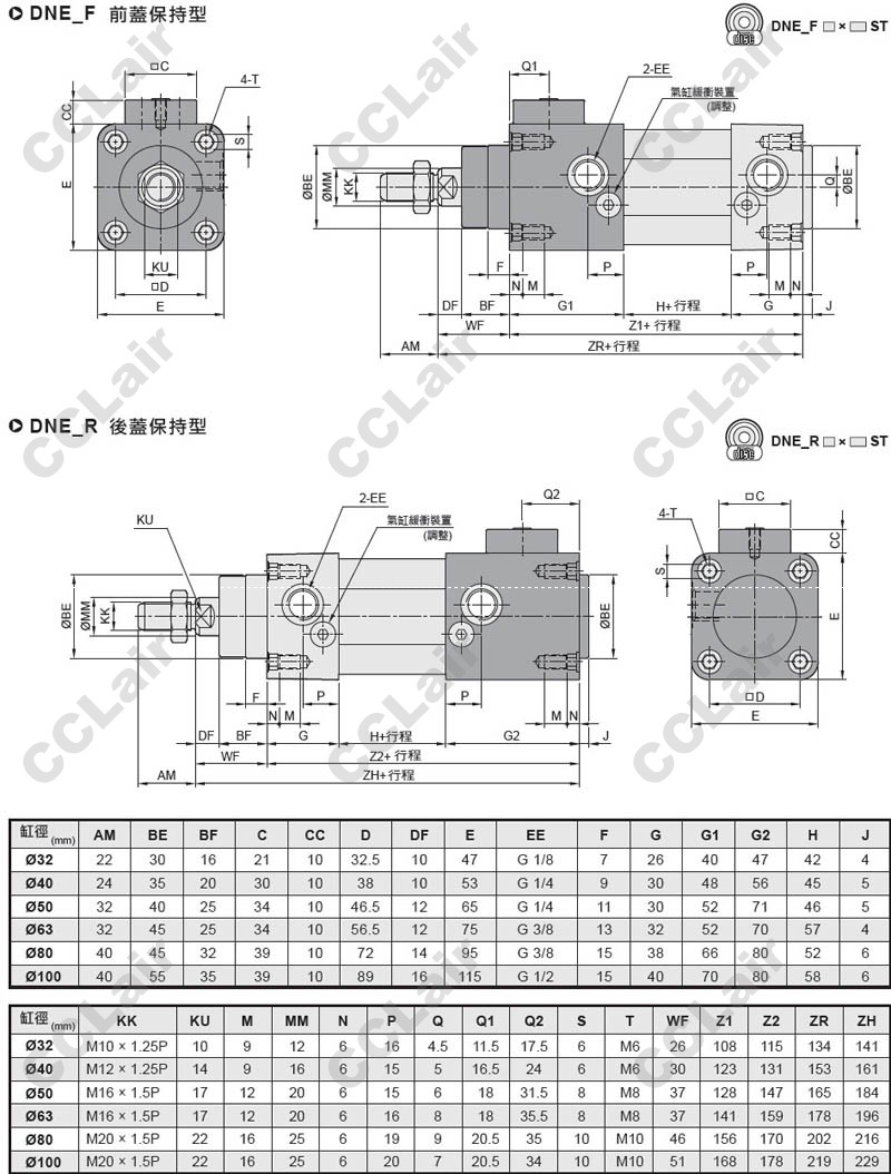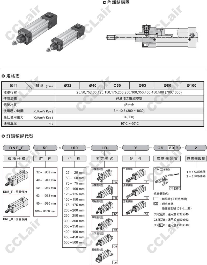 DNE-F32*50-LB-Y,DNE-F32*75-LB-Y,DNE-F32*100-LB-Y,DNE-F32*125-LB-Y,DNE-F32*150-LB-Y,止落型鋁合金氣缸