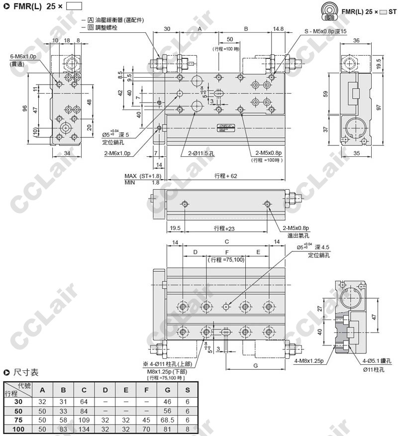 FMR10*30-SD2,FMR10*50-SD2,FMR16*30-SD2,FMR16*50-SD2,FMR16*75-SD2,FMR16*100-SD2,滑座氣缸