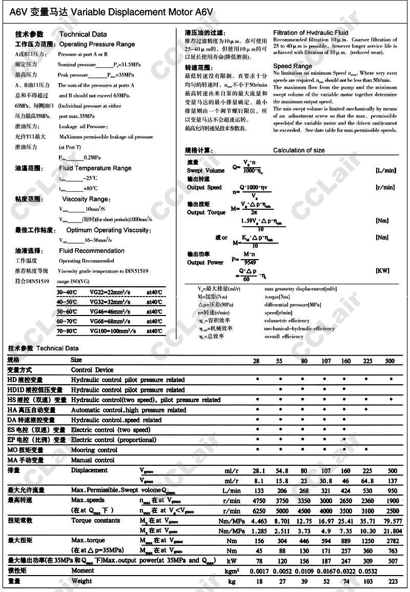 A6V500HD15FP1,A6V500HD25FP1,A6V500HS15FP1,A6V500HS25FP1,CCLair A6V500HD15GZ2,A6V500HD25GZ2,