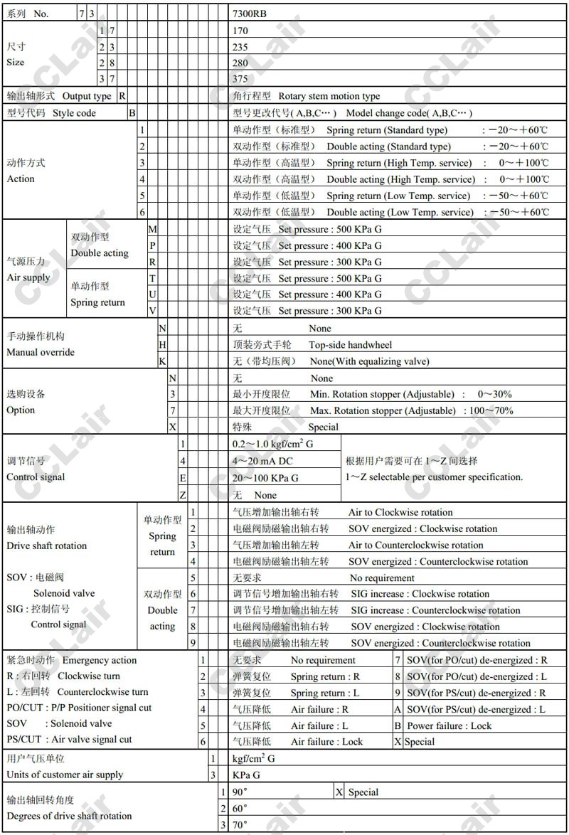 7317RB,7323RB,7328RB,7337RB,氣動角行程式執(zhí)行機構(gòu)
