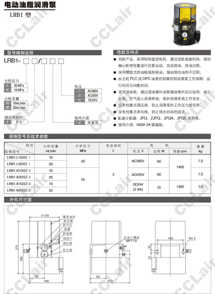 LRB1-L10,LRB1-L20,LRB1-K10,LRB1-K20,LRB1-L10/2ZI,LRB1-L20/2ZI,LRB1-K20/2ZIII,電動油脂潤滑泵