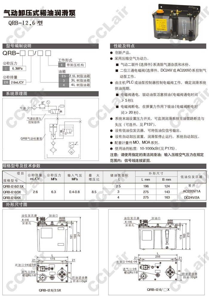 QRB-I2.6/2.5X,QRB-I2.6/3X,QRB-I2.6/4X,氣動(dòng)卸壓式稀油潤(rùn)滑泵