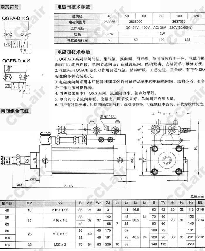 QGFB-40,QGFB-50,QGFB-63,QGFB-80,QGFB-100,QGFB-125,帶閥組合氣缸