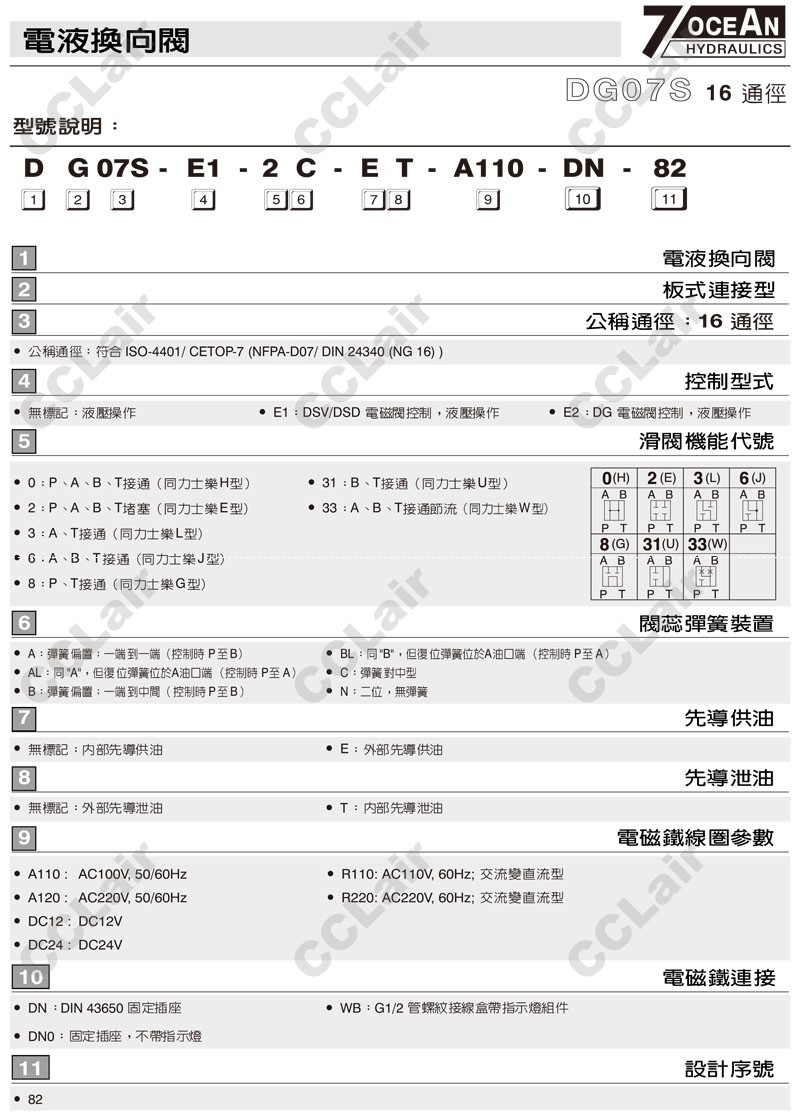 DG07S-0,DG07S-2,DG07S-3,DG07S-6,DG07S-8,DG07S-31,DG07S-33,DG07S-2C-ET-A110-DN-82,7OCEAN七洋電液換向閥