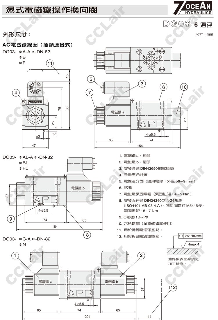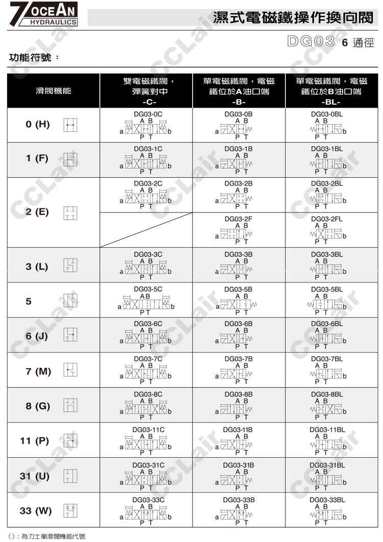 型號: DG03-0,DG03-1,DG03-2,DG03-3,DG03-5,DG03-6,DG03-7,DG03-8,DG03-11,DG03-22,DG03-31,DG03-33,7OCEAN七洋濕式電磁