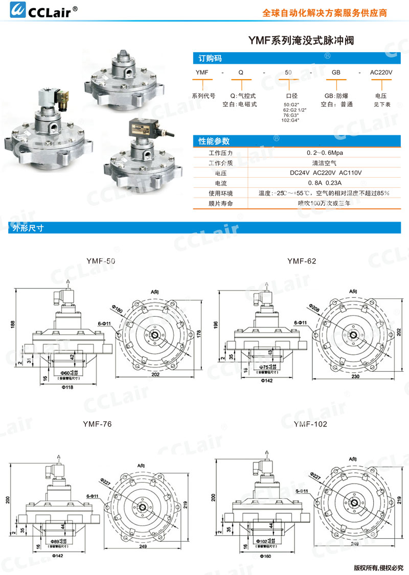 YMF-50,YMF-62,YMF-76,YMF-102,淹沒式脈沖閥