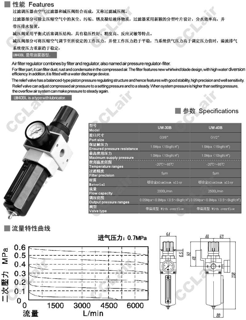 UNIWO,UW-20B,UW-30B,UW-40B,UW-50B,UW-60B,空氣過(guò)濾減壓閥