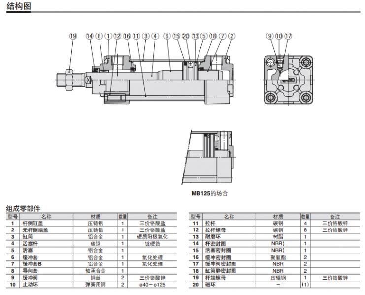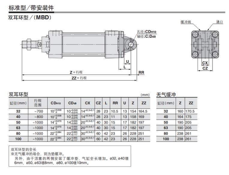 MDBT125-250,MDBT125-300,MDBT125-350,MDBT125-400,標(biāo)準(zhǔn)型氣缸