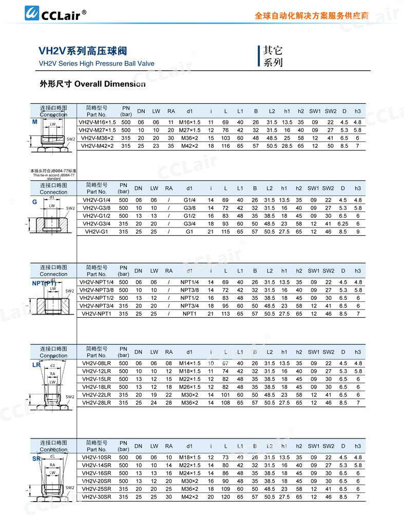 VH2V-M16*1.5,VH2V-M27*1.5,VH2V-M36*2,VH2V-M42*2,高壓球閥