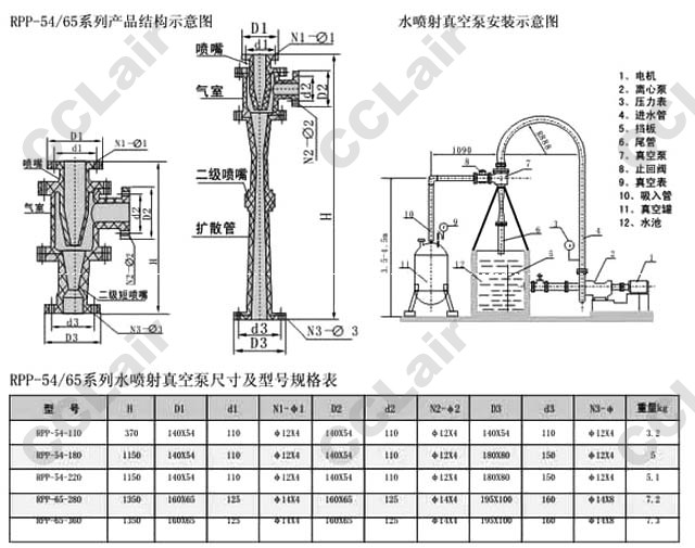 RPP-54-90,RPP-54-110,RPP-54-180,RPP-54-220,RPP-65-280,RPP-65-360,增強(qiáng)聚丙烯水噴射真空泵