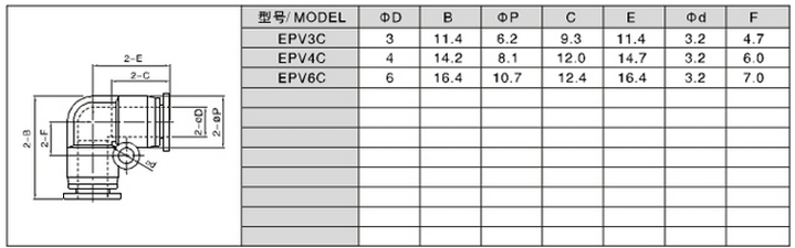 EPV3C,EPV4C,EPV6C,L型二通接頭