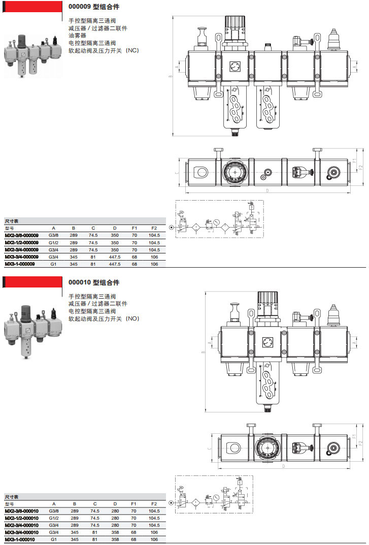MX2-3/8-000001,MX3-1/2-000003,MX2-3/4-000010,MX3-1-000005,camozzi氣源處理裝置組合件