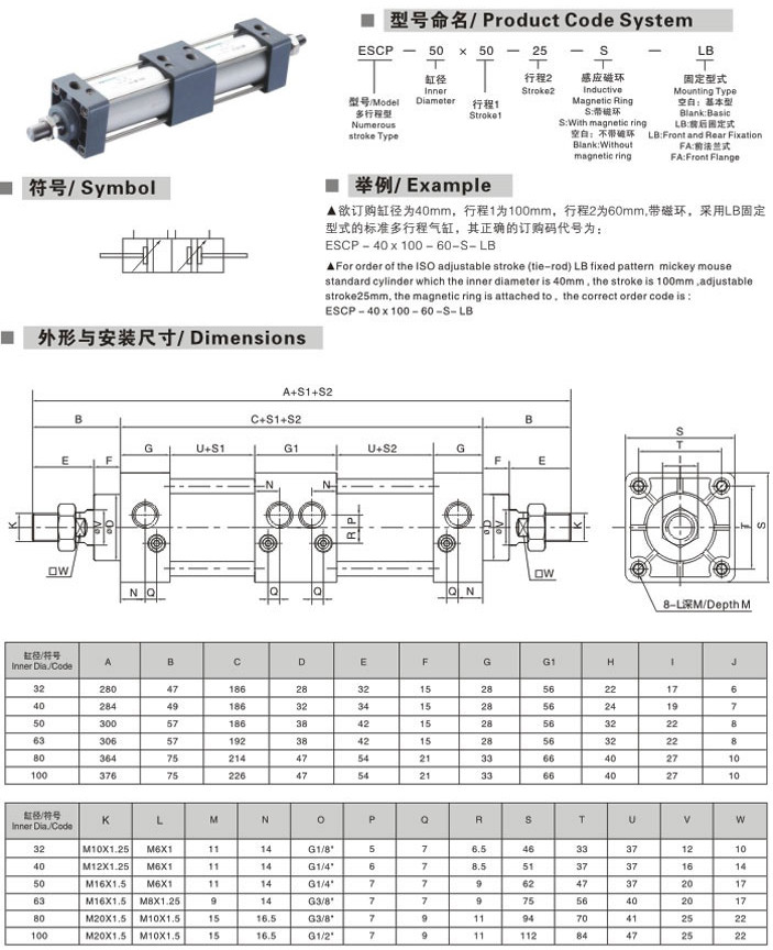 ESCP-32*50-25-S,ESCP-40*100-25-S,ESCP-50*50-60-S,ESCP-63*100-60-S,標(biāo)準(zhǔn)氣缸 |