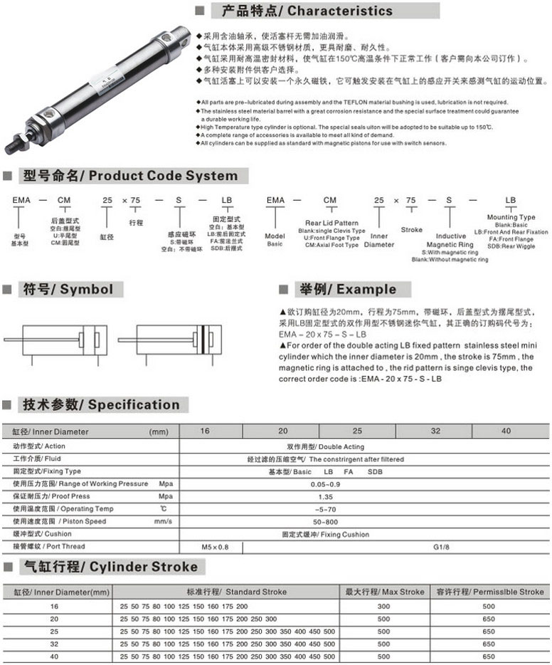 EMA-CM16*25,EMA-CM20*50,EMA-CM32*80,EMA-U25*50,EMA-U40*100